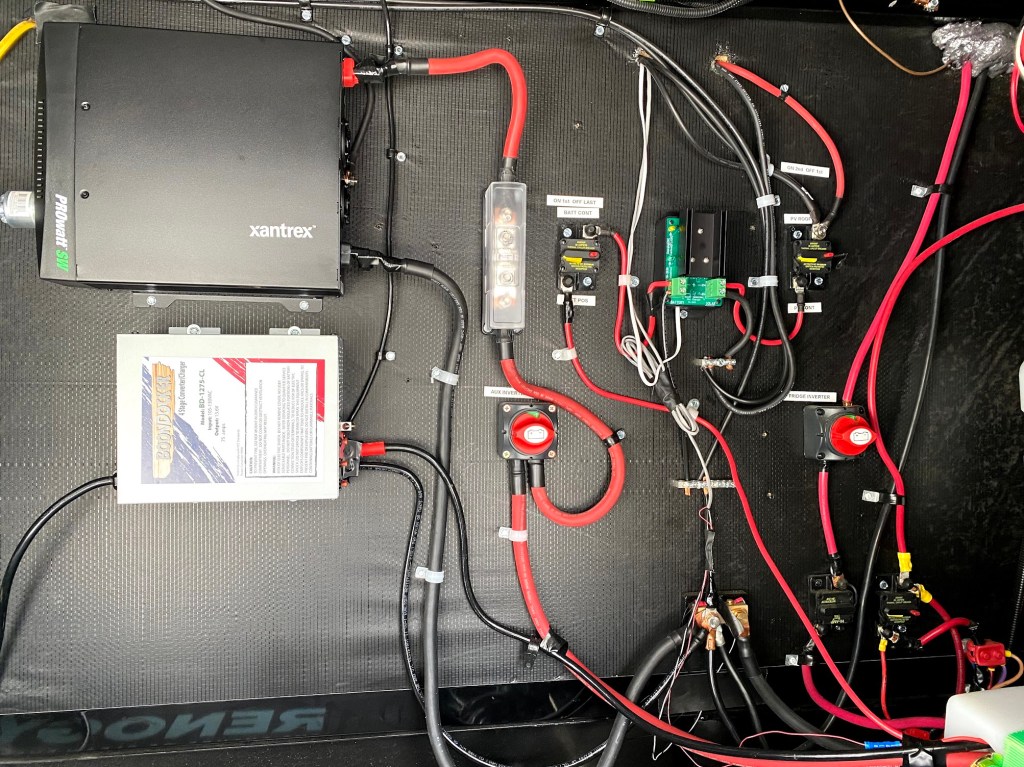 Solar power, auxiliary inverter and auxiliary charger setup.