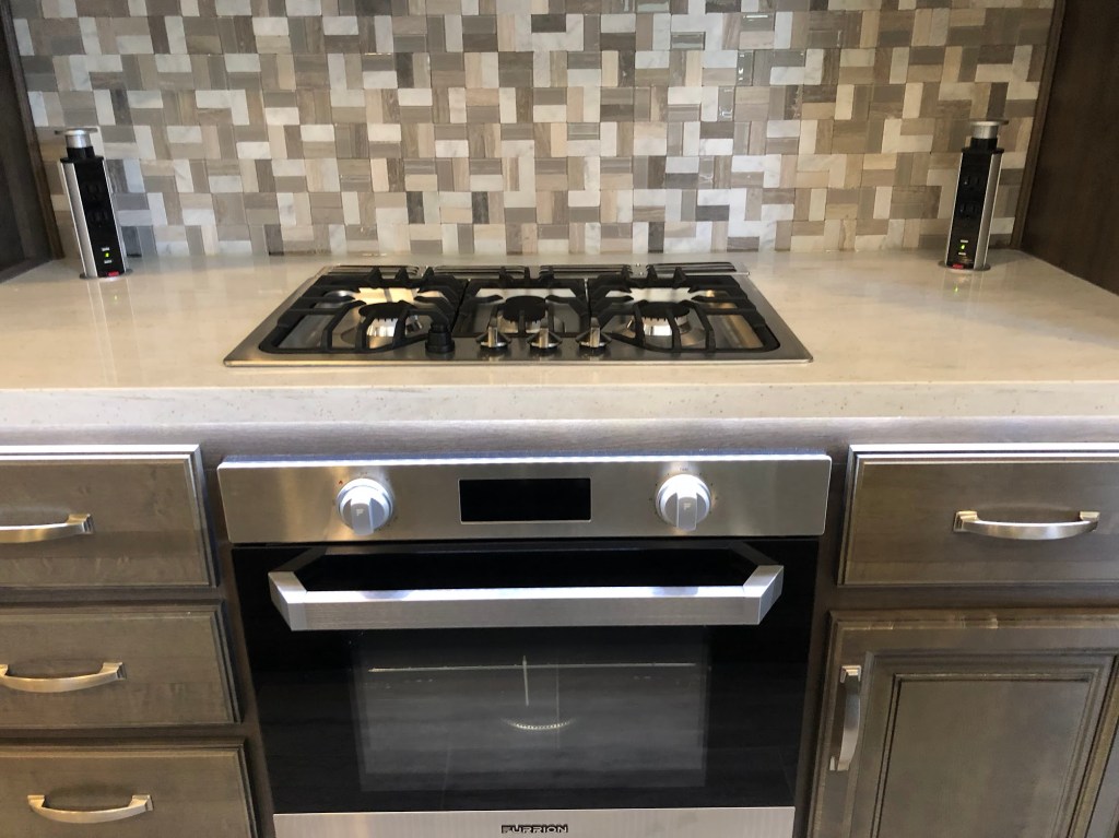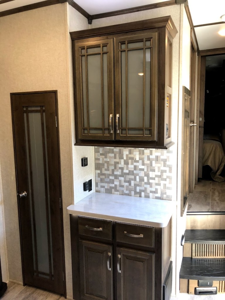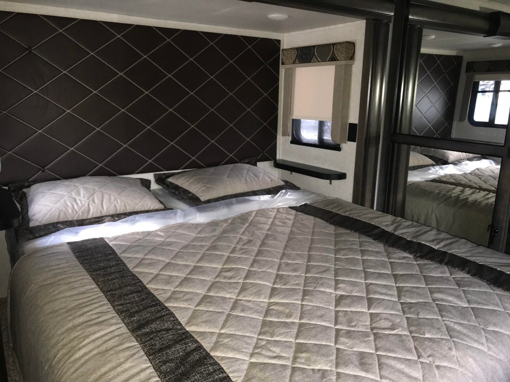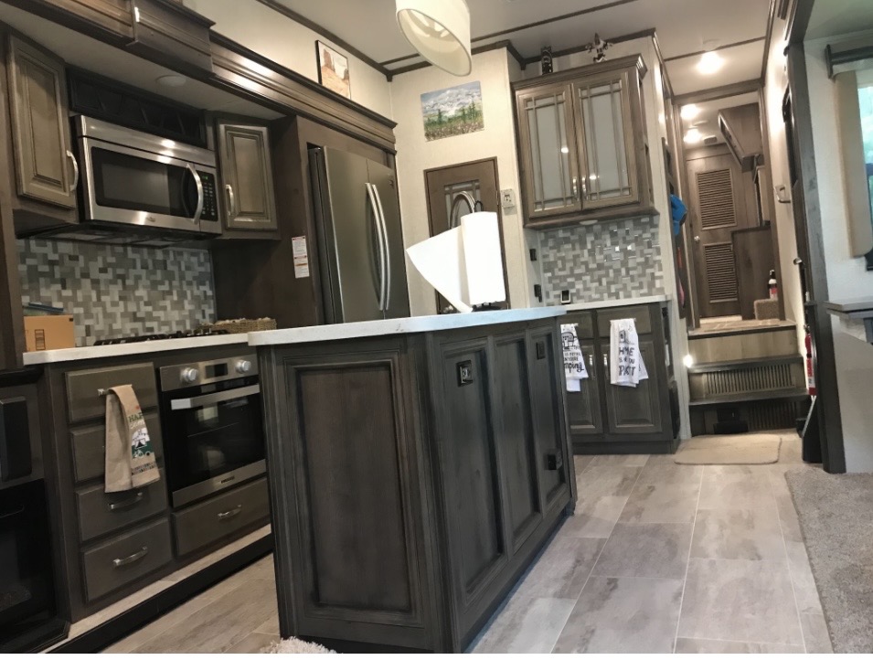 This unit has the RV King size bed option and the 18 cubic feet residential refrigerator with ice maker with its own 1,000 watt inverter.